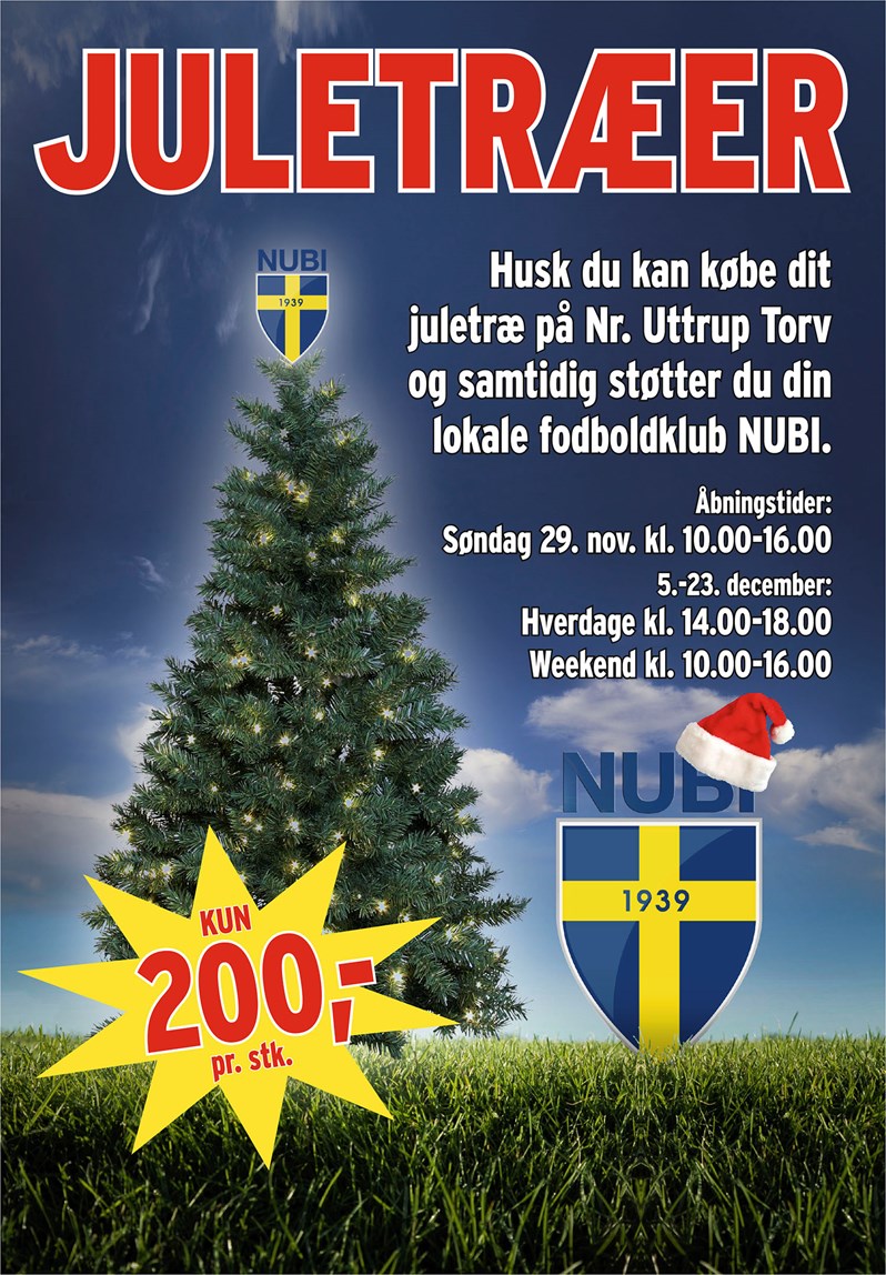 Som de sidste mange år sælger NUBI igen i år juletræer på Nr. Uttrup Torv. Støt klubben og kig forbi torvet. Se åbningstider her...