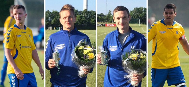 Ovenfor er de fire spillere der havde kampjubilæum i løbet af 2016. Fra venstre: Morten Mariager 150 kampe, Jan Olesen 150 kampe, Jes Rødhus 350 kampe og Marco Witt 400 kampe.